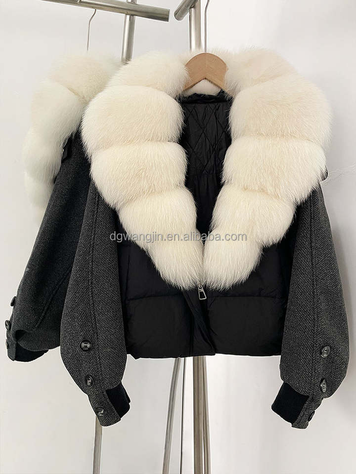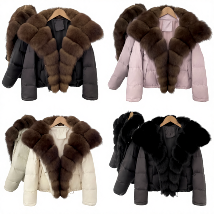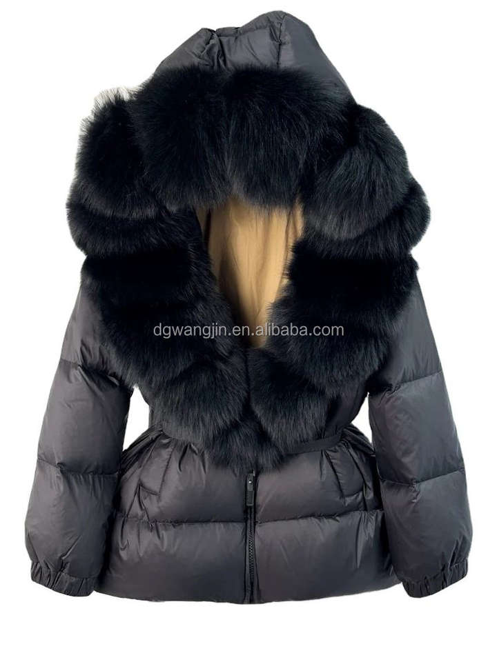 เสื้อโค้ทพัฟเฟอร์ฟิชขนฟ็อกซ์ธรรมชาติสำหรับผู้หญิง ฤดูหนาว 2025 อุ่นสบาย ขนเป็ดขาว 90% กันน้ำ ขายส่ง