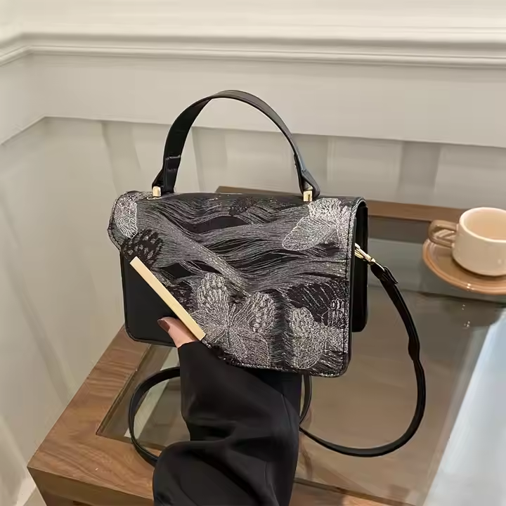 กระเป๋าถือสะพายไหล่แบบซิป PU รุ่นใหม่ทันสมัยประจำฤดูหนาวปี 2025 ปักลายดาว สไตล์วินเทจสำหรับผู้หญิง แฟชั่นสดใส