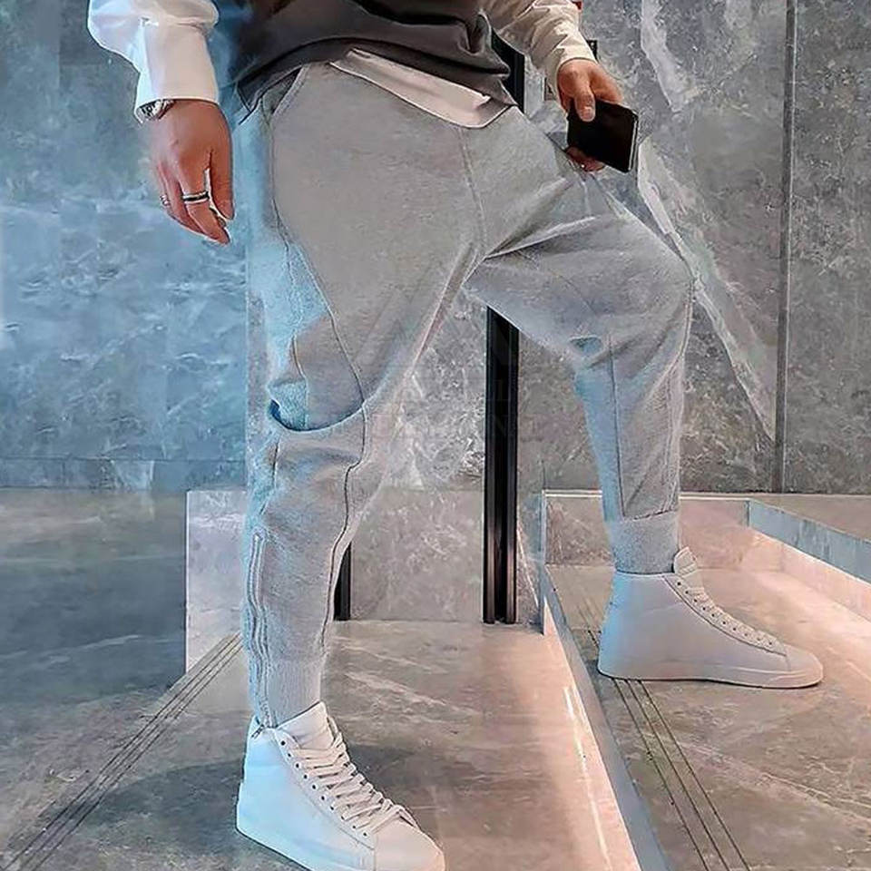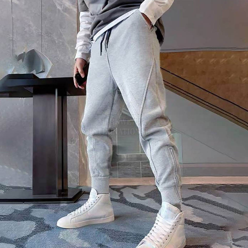กางเกงวอร์มแบบผูกเชือกเอวสูงสำหรับผู้ชายกางเกงวอร์มแบบเรียงซ้อนกันสีพื้นสำหรับฤดูหนาว2025