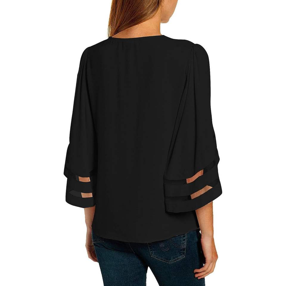 Luvamia เสื้อเบลาส์คอวีลำลองสำหรับผู้หญิง, เสื้อเบลาส์แขนกระดิ่ง3/4เสื้อตาข่ายปัก XS-XL ผ้าไหมทางการแต่งระบาย