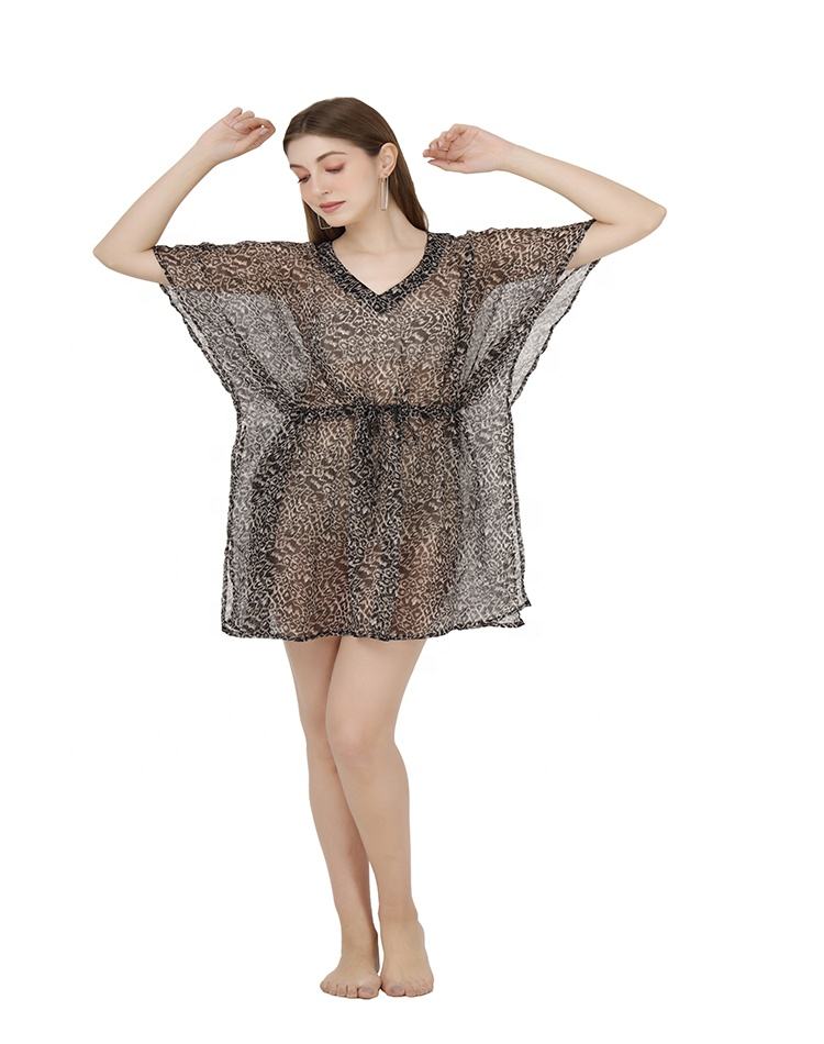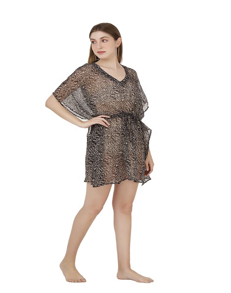 ชุดว่ายน้ำชิ้นเดียวพิมพ์ลายเสือดาวสีดำเซ็กซี่ของผู้หญิง2025 100% ผ้าชีฟองเป็นมิตรกับสิ่งแวดล้อมแห้งเร็วฤดูร้อนสไตล์ caftan Beach