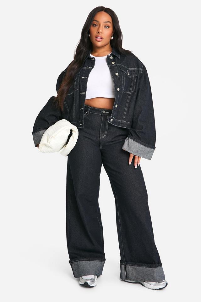 แจ็คเก็ตยีนส์ผู้หญิงสีดำล้วนทรงโอเวอร์ไซส์ ปี 2025 ผ้าฝ้ายคุณภาพสูง คอตั้ง สไตล์สตรีท