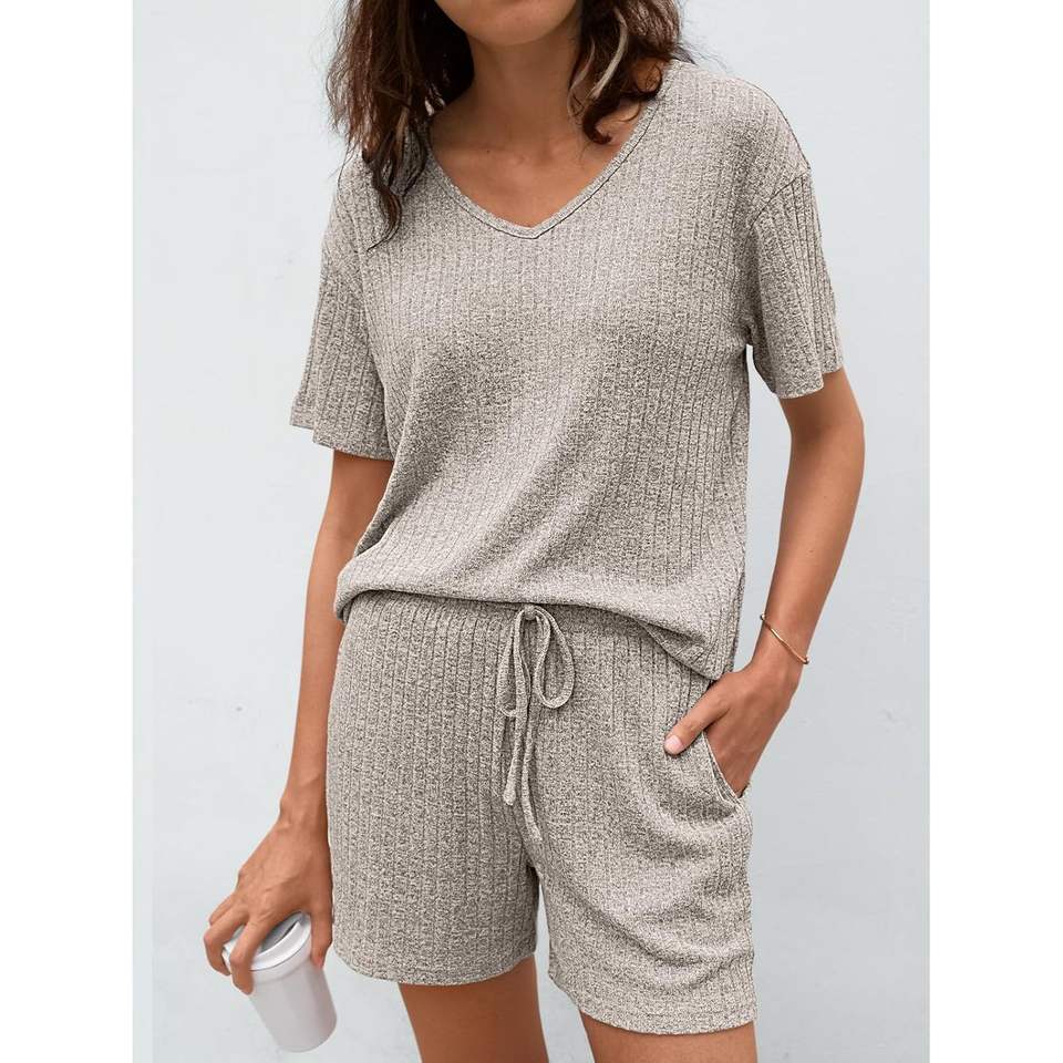ชุดอยู่บ้านทรงหลวม2ชิ้นสำหรับผู้หญิงชุดวอร์ม2025ชุดใส่วันหยุดพักผ่อน XS สำหรับฤดูร้อน
