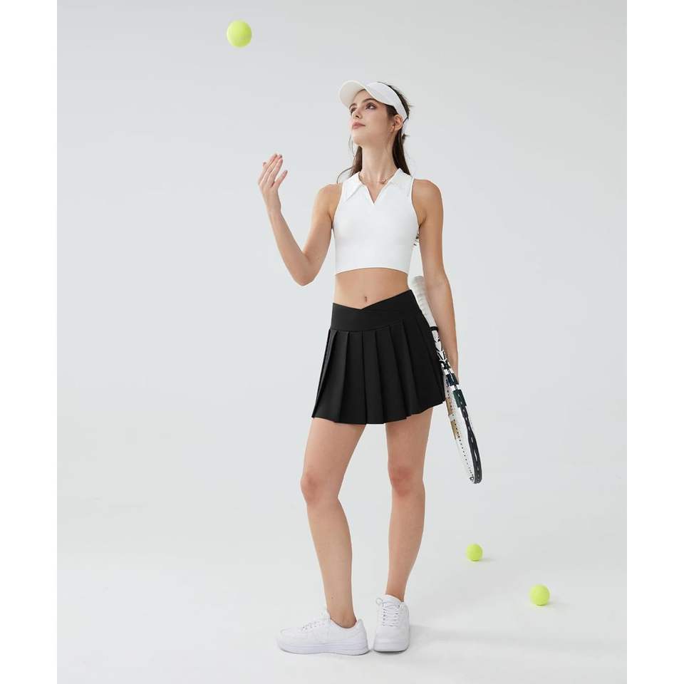 กระโปรงเทนนิสกีฬาของผู้หญิง2025มีกระเป๋าด้านในกางเกงขาสั้นขนาดเล็ก + ขนาดเล็ก OEM ชุดเล่นเทนนิสโพลีเอสเตอร์ออกแบบโลโก้ได้ตามต้องการ