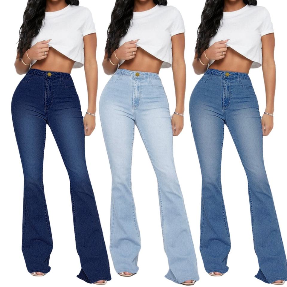 กางเกงยีนส์ทรงบูทคัทเอวสูงสีน้ำเงินสำหรับผู้หญิงปี 2025 ทรงสวยหรู ระบายอากาศได้ดี ผ้ายีนส์ยืด ทรงดินสอ