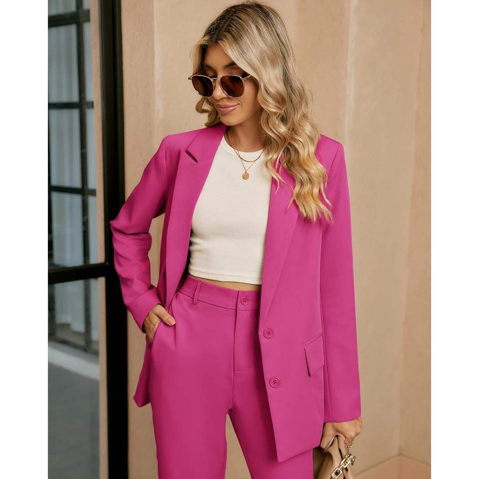 Luvamia ชุดทำงานแบบลำลองสำหรับผู้หญิง, ชุดสูท2ชิ้นเสื้อสูทออกงานชุดสูทออกงานและกางเกงขาตรงเอวสูงไซส์ S