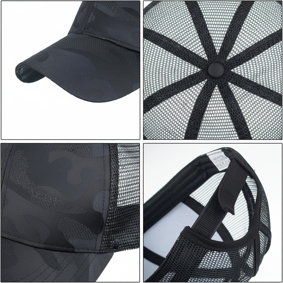 2025หมวกเบสบอลลายพราง5แผงลายพรางสำหรับผู้หญิงหมวกปีกโค้งผ้าอ๊อกซ์ฟอร์ดตาข่ายหางม้าสูง