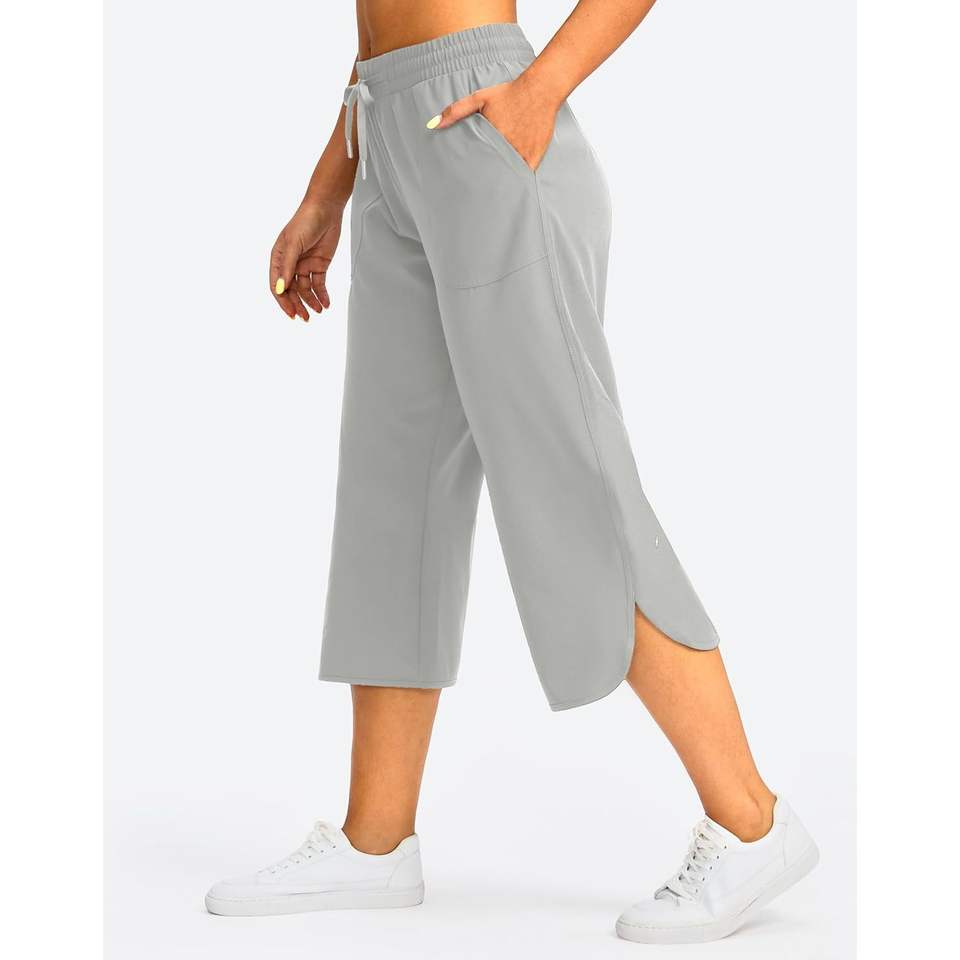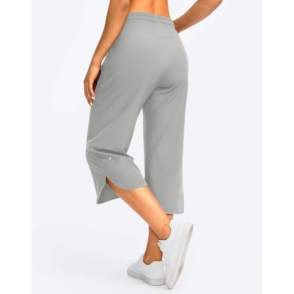 กางเกงคาปรีลำลองสำหรับผู้หญิง2025กางเกงขากว้างน้ำหนักเบาทรงหลวมสำหรับการเดินป่า & การเดินทางขนาด3XL สีสดใสสีเทา