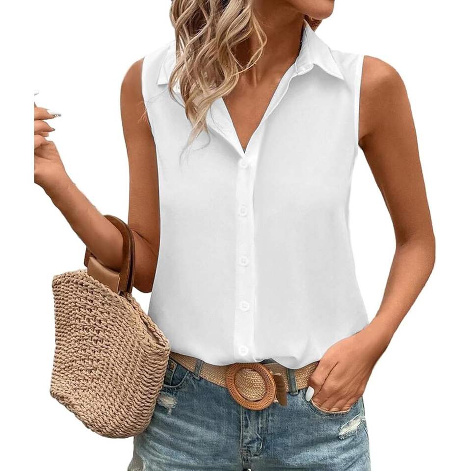 2025เสื้อเบลาส์ลายสก็อตลำลองสำหรับผู้หญิงเสื้อแขนกุดติดกระดุมคอวีเสื้อปักโลโก้ขนาด XL สำหรับใส่ทำงานออฟฟิศ