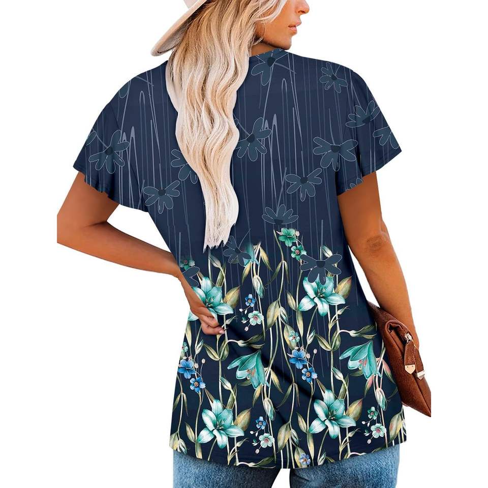 2025เสื้อสไตล์โบฮีเมียนสีฟ้ามิ้นต์ XL เก๋ๆสำหรับผู้หญิงเสื้อแขนสั้นเลกกิ้งคอวีสากร