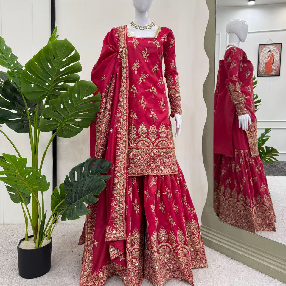 คุณสมบัติ:ชุด kurta sharara และ dupatta แบบตรง
