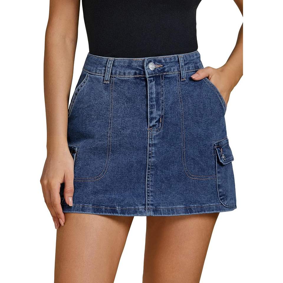 2025กระโปรงสั้นผ้าเดนิมเอวสูงสำหรับผู้หญิง, กระโปรงสั้นผ้ายีนส์เอวสูงกระเป๋าทันสมัย
