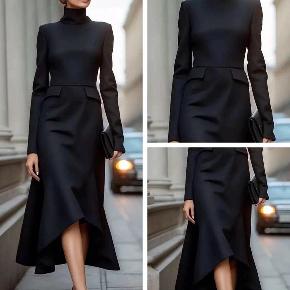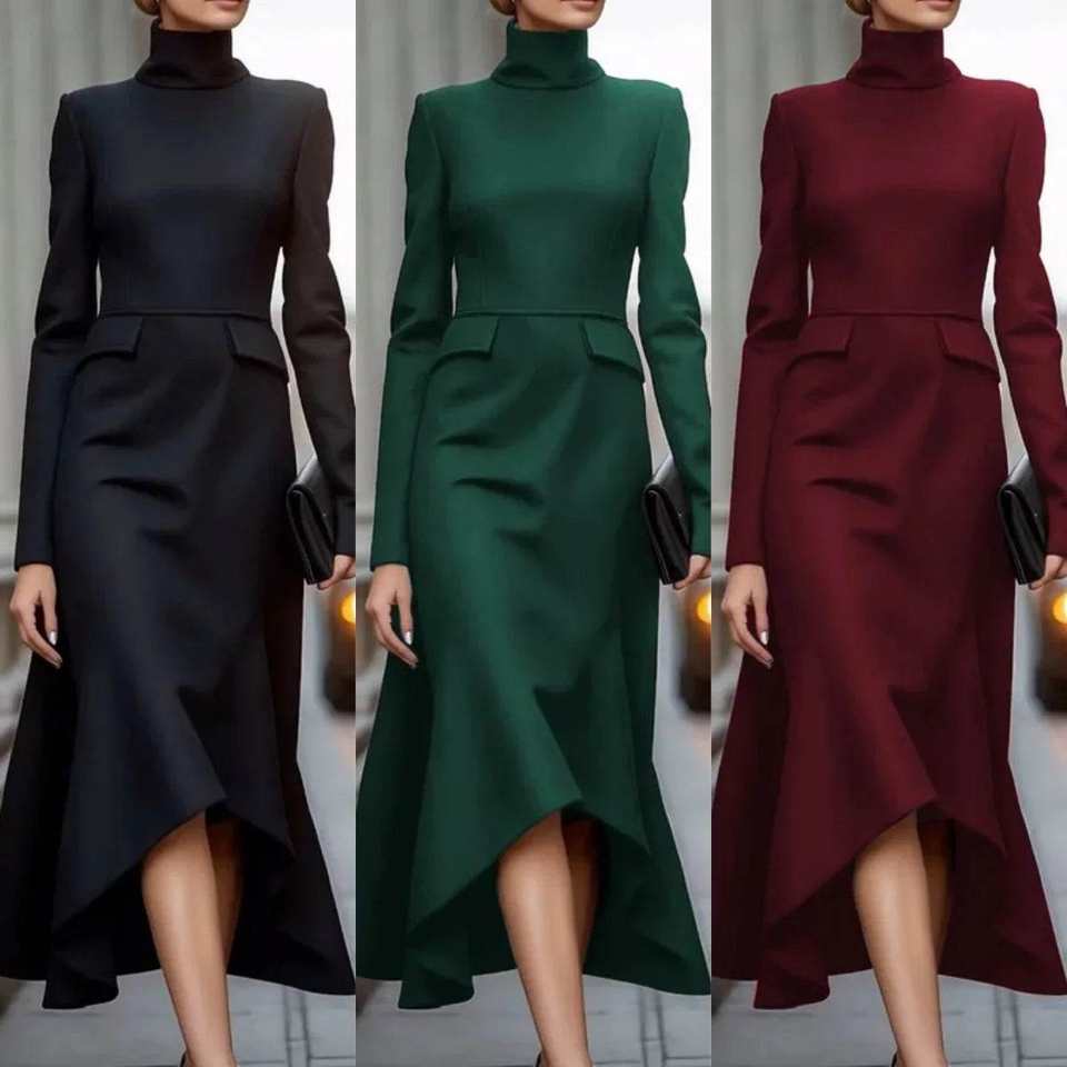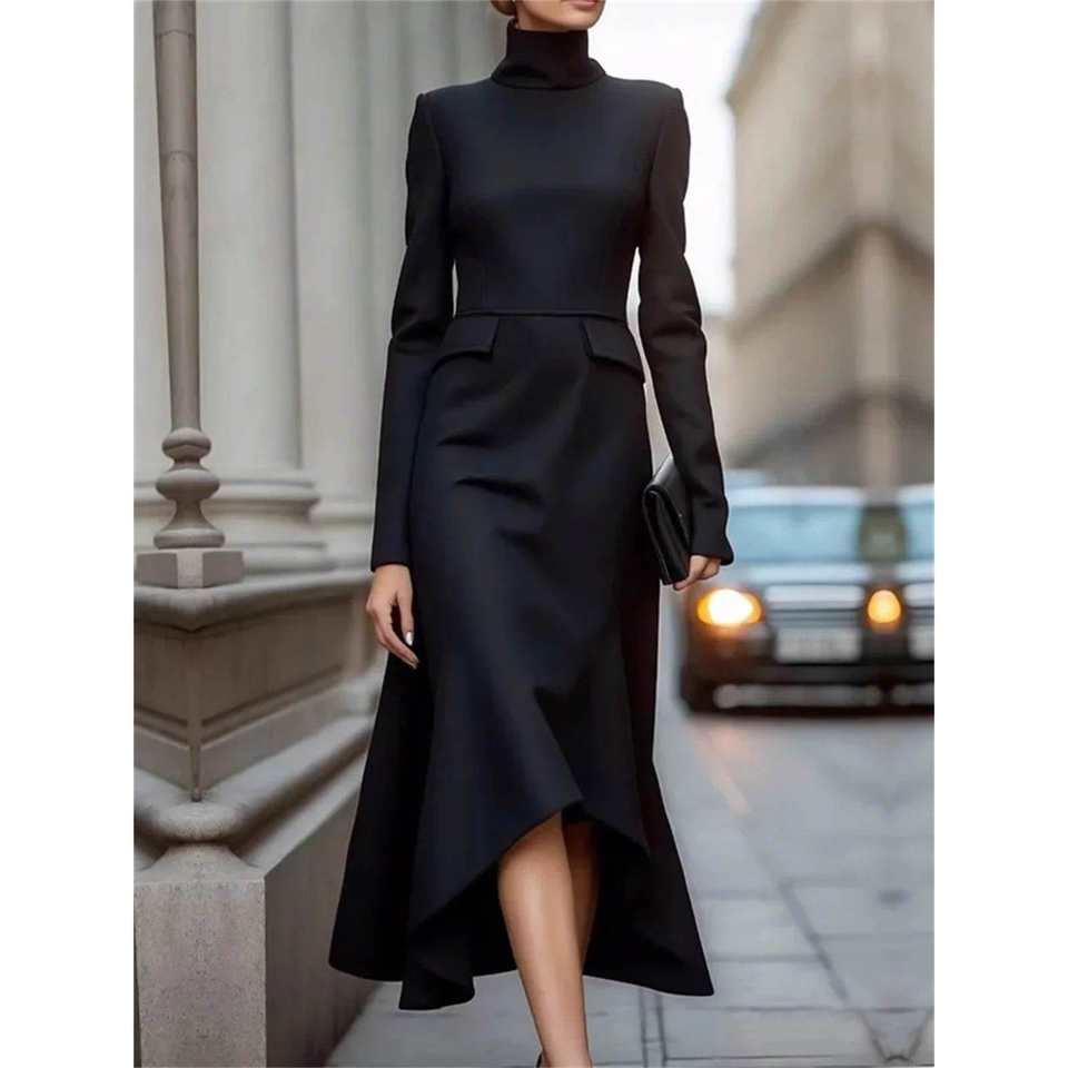 2025 Women's Fashion Elegant Church Evening Party Robe Formal Commute Dress High Neck Long Sleeves Elegant Vestidos for Spring