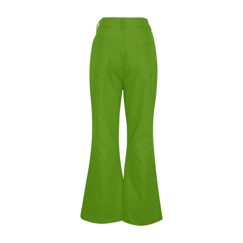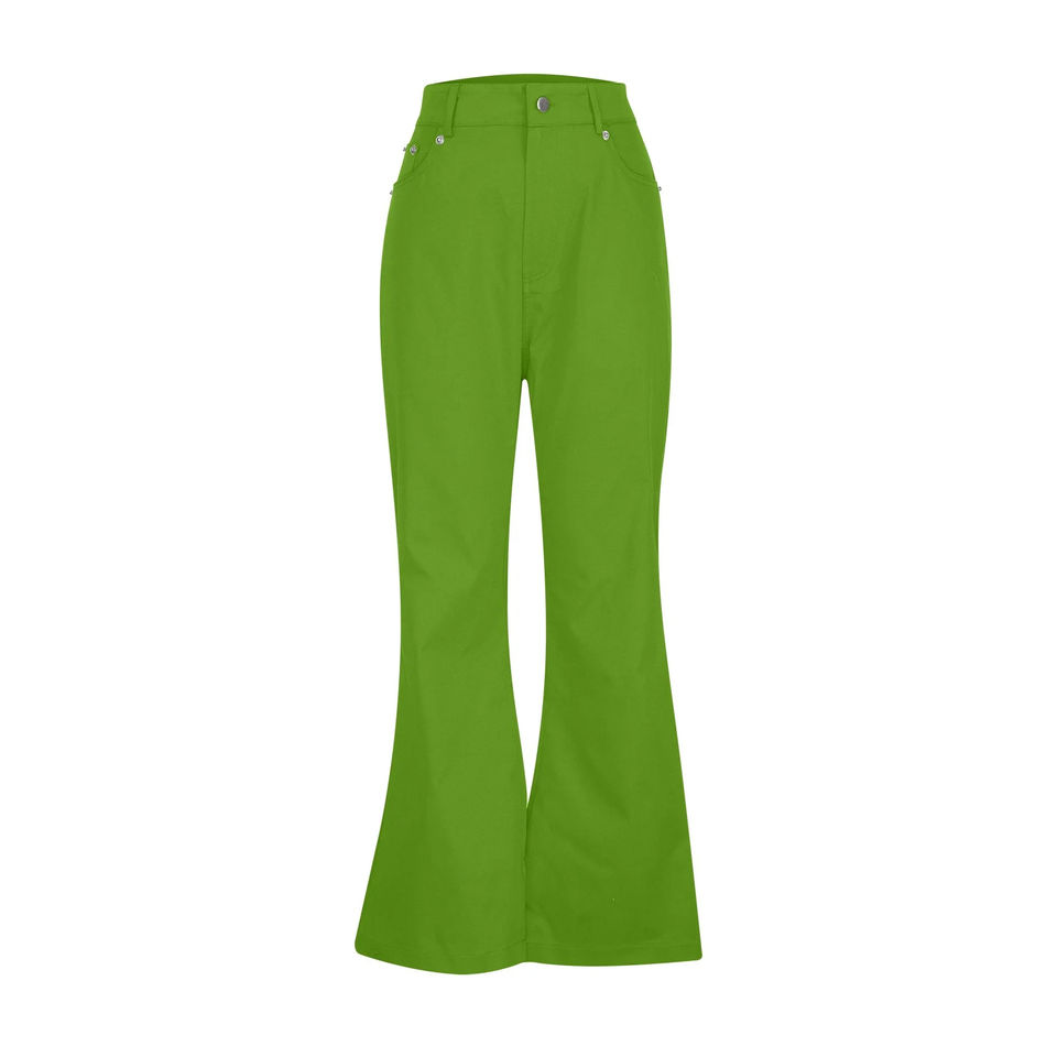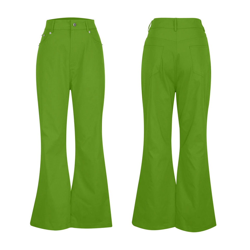 กางเกงขาบานของผู้หญิง2025สีทึบเอวกลางลำลองดีไซน์ผ้าใบแบบเชือกผูกด้านหน้าคุณภาพสูงสีทึบ