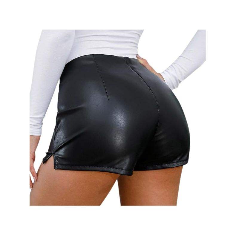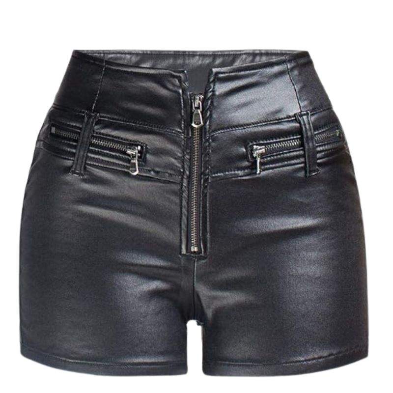 กางเกงขาสั้นหนังเอวสูงทรงหลวมสไตล์ไบค์เกอร์สำหรับผู้หญิง ปี 2025 พร้อมกระเป๋า กันน้ำ ระบายอากาศได้ดี เหมาะสำหรับใส่ลำลองในฤดูร้อน สตรีทแวร์