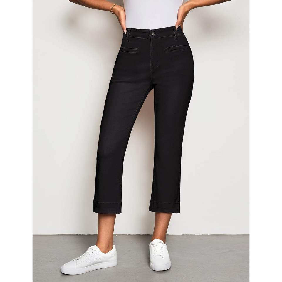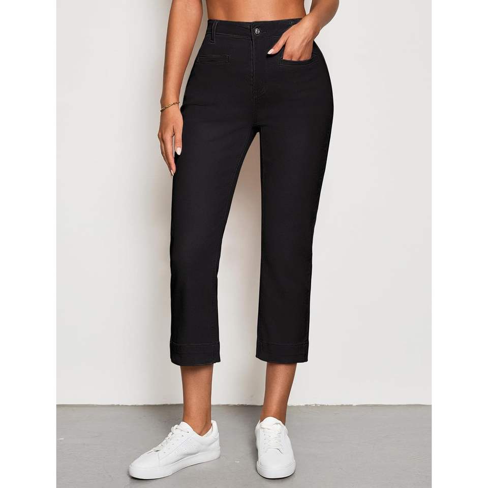 กางเกงยีนส์คาปรีเอวสูงของผู้หญิง2025กางเกงยีนส์ผ้ายืดทรงตรงมีกระเป๋าแบบลำลอง