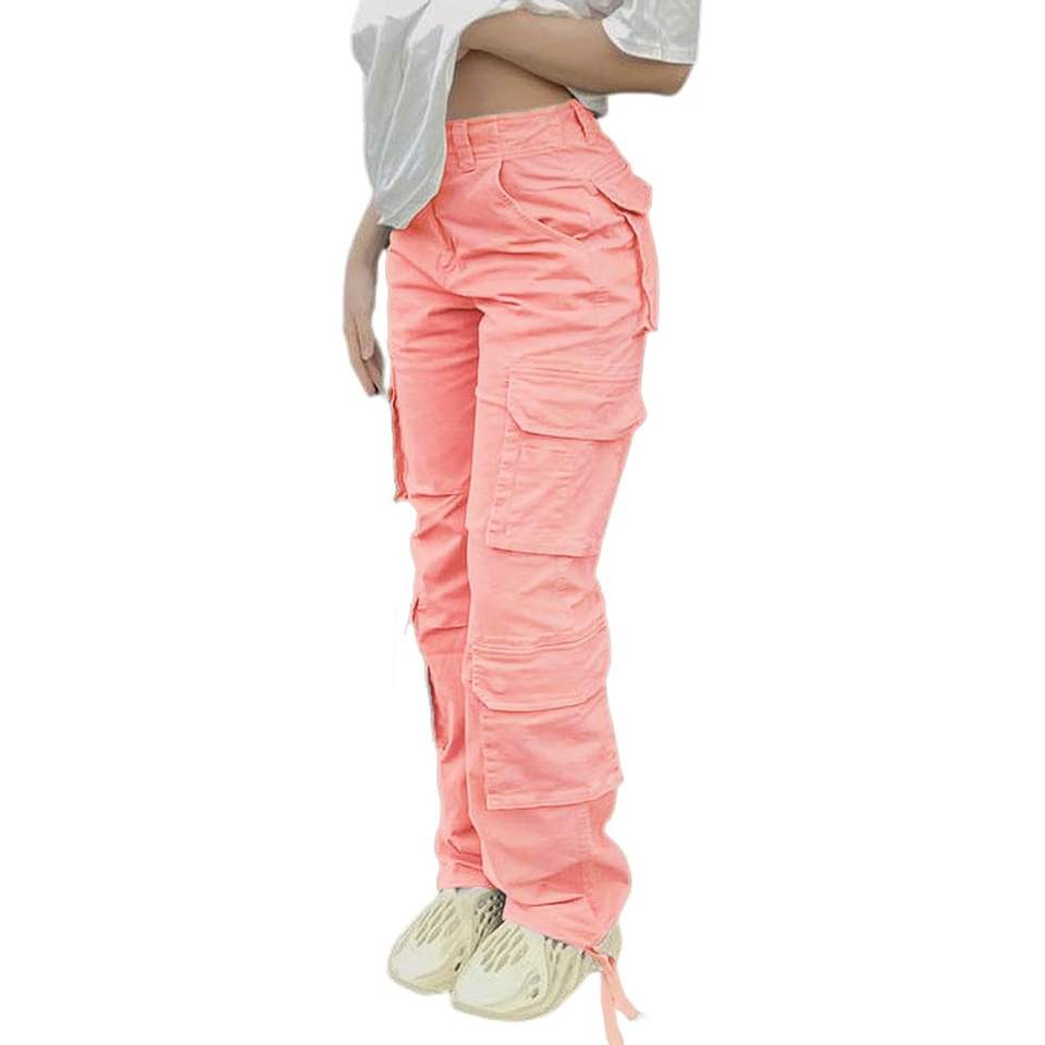 Viatabuna กางเกงคาร์โก้เอวสูงของผู้หญิง, ขายาวตรงขากว้าง Y2K มีกระเป๋ามีรอยย่น