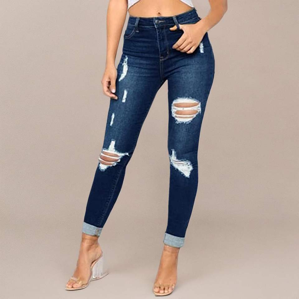 กางเกงยีนส์เอวสูงรัดรูปเอวสูงสำหรับผู้หญิง, กางเกงยีนส์เอวเล็กเอวสูงระบายอากาศได้ดี2025