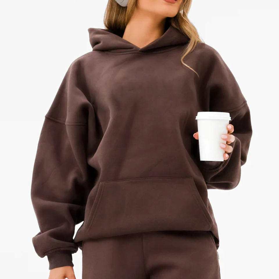 2025เซ็ตกีฬาผู้หญิง + กางเกงขายาวมีฮู้ด, เซ็ตกีฬา2ชิ้นเสื้อฮู้ดทรงหลวมลำลองสีพื้นฤดูใบไม้ร่วงฤดูหนาว