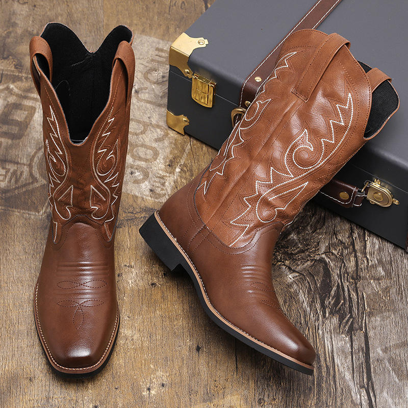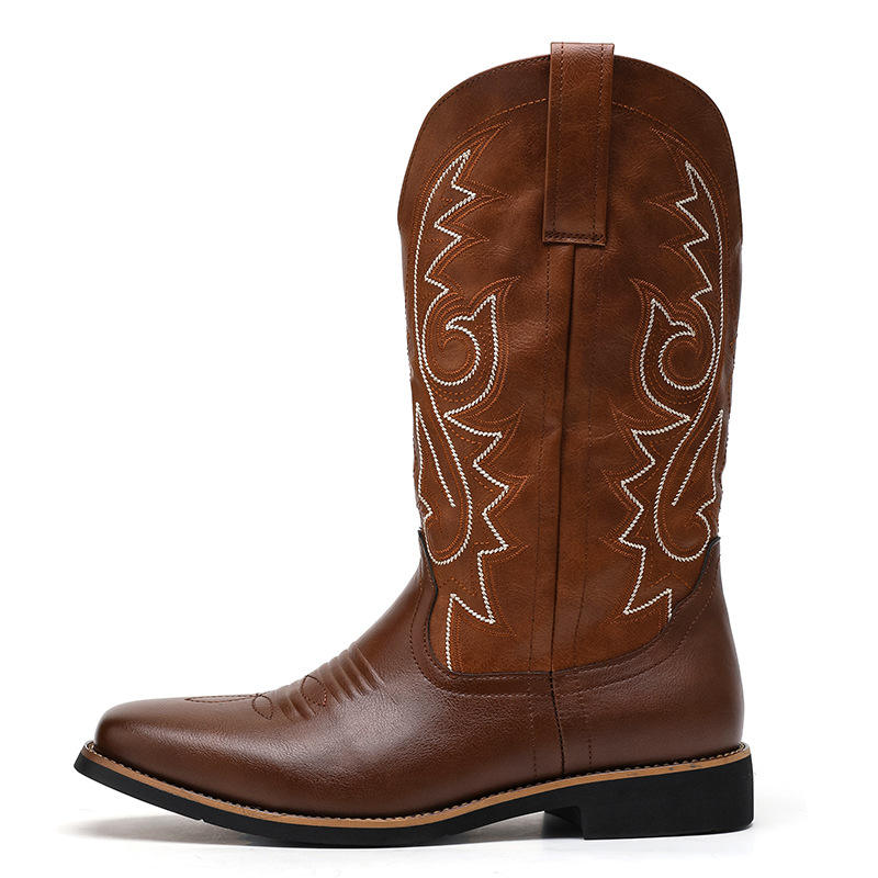 รองเท้าบูทหนังสีน้ำตาลทรงคาวบอยสไตล์ตะวันตกแบบหุ้มข้อสูงสำหรับผู้หญิง ปี 2025 ขายดีที่สุดสำหรับฤดูหนาว ขายส่ง