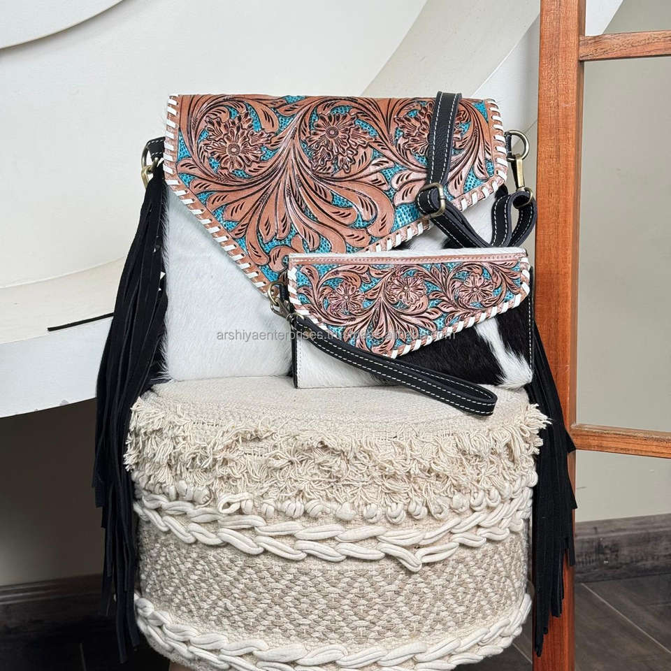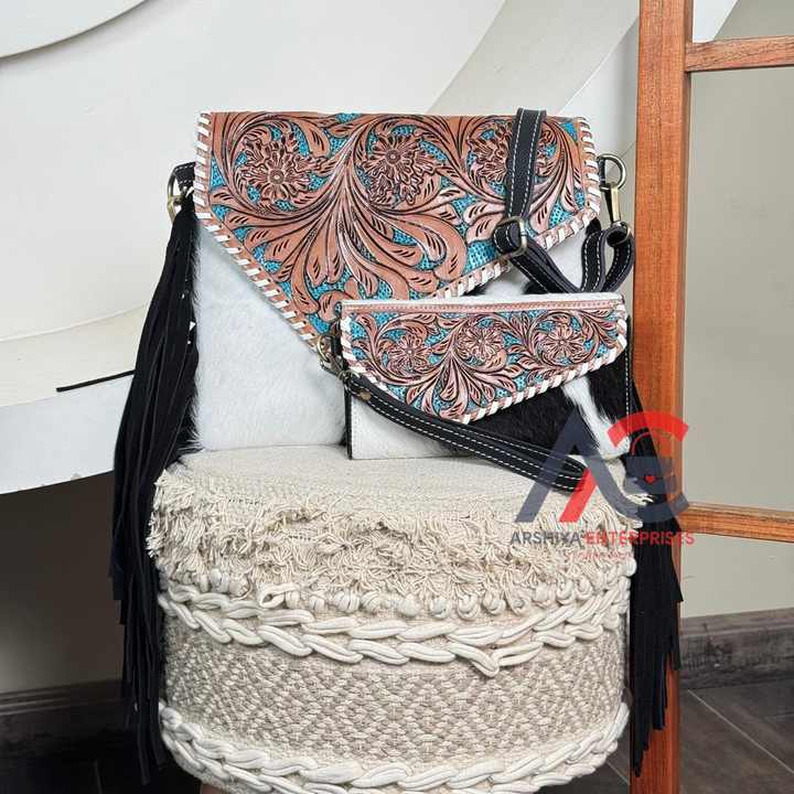 Hand Tooled Cowhide Leather 2-piece Set
