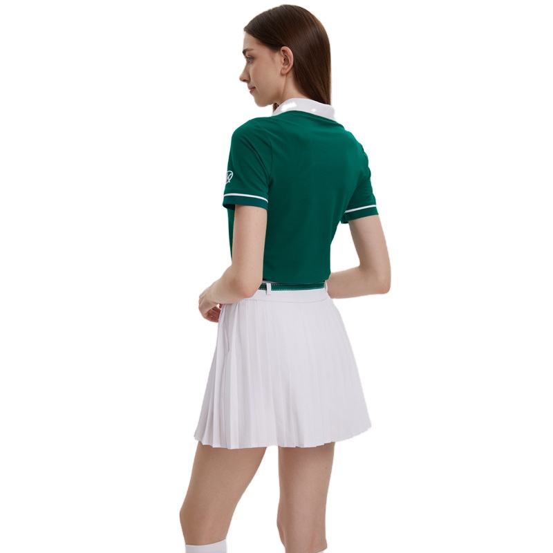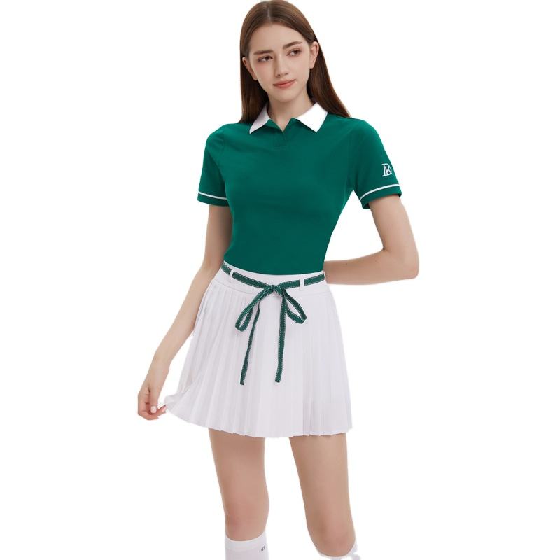 ชุดกอล์ฟผ้าฝ้ายสีพื้นน้ำหนักเบาสำหรับผู้หญิง ปี 2025 ระบายความชื้น ชุดกระโปรงฤดูร้อนและเสื้อโปโลแขนสั้น คอมโบ รับผลิตแบบ OEM ขายส่ง