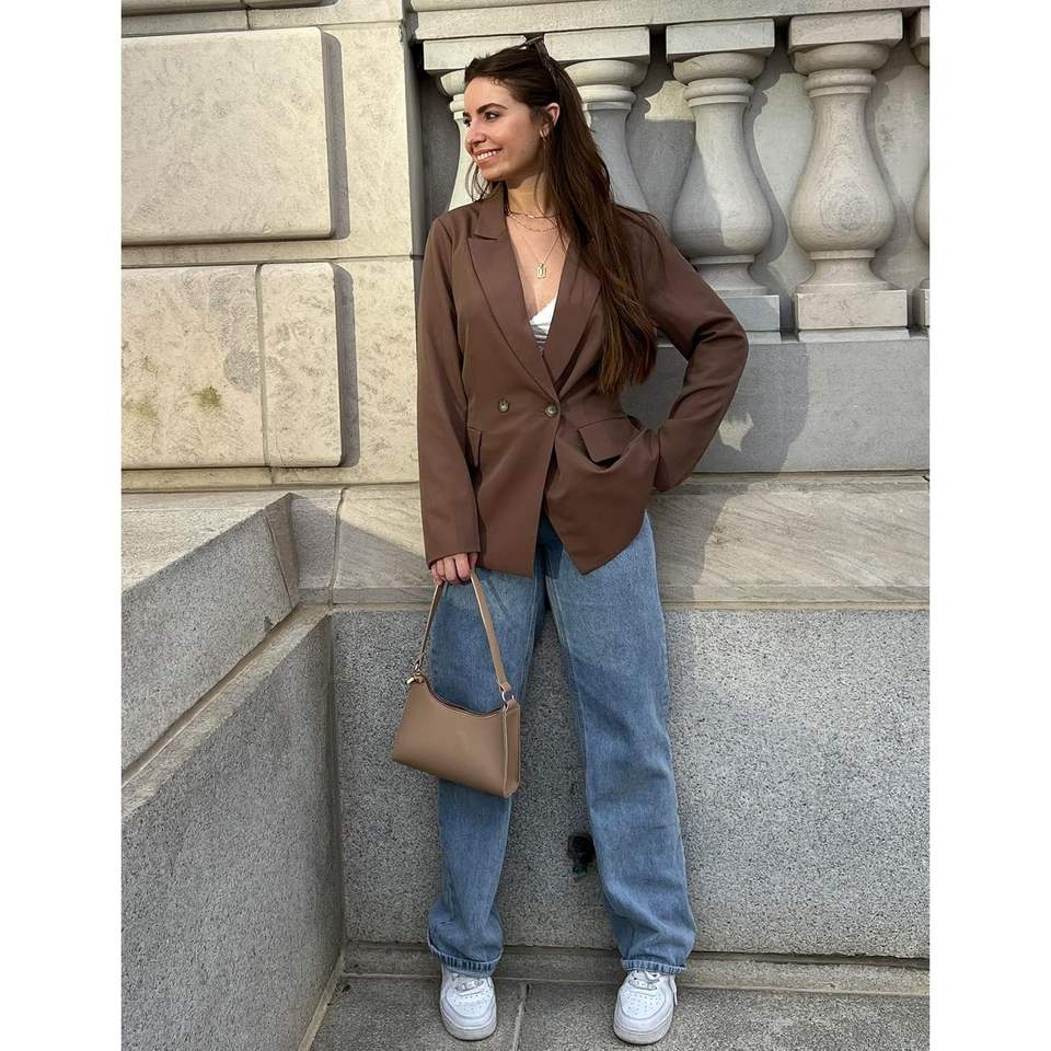 เสื้อเบลเซอร์แขนยาวสำหรับผู้หญิง2025ชุดสูทแบบถักแนวธุรกิจพร้อมกระดุมตกแต่งชุดเดรสและชุดทำงานแบบลำลอง