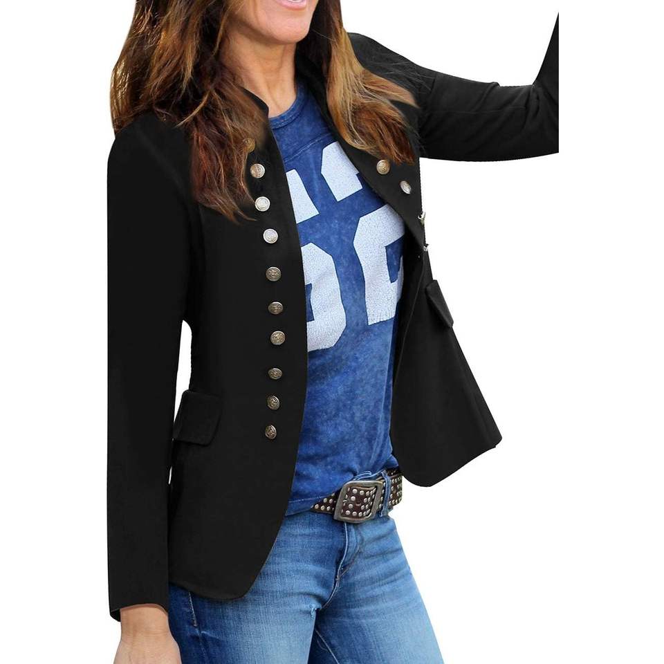 เสื้อเบลเซอร์ผ้าลูกฟูกแขนยาวเปิดหน้าสำหรับผู้หญิง, เสื้อเบลเซอร์ลำลองมีกระดุมปักลายขนสัตว์สำหรับใส่ทำงานสีพื้นใน2025
