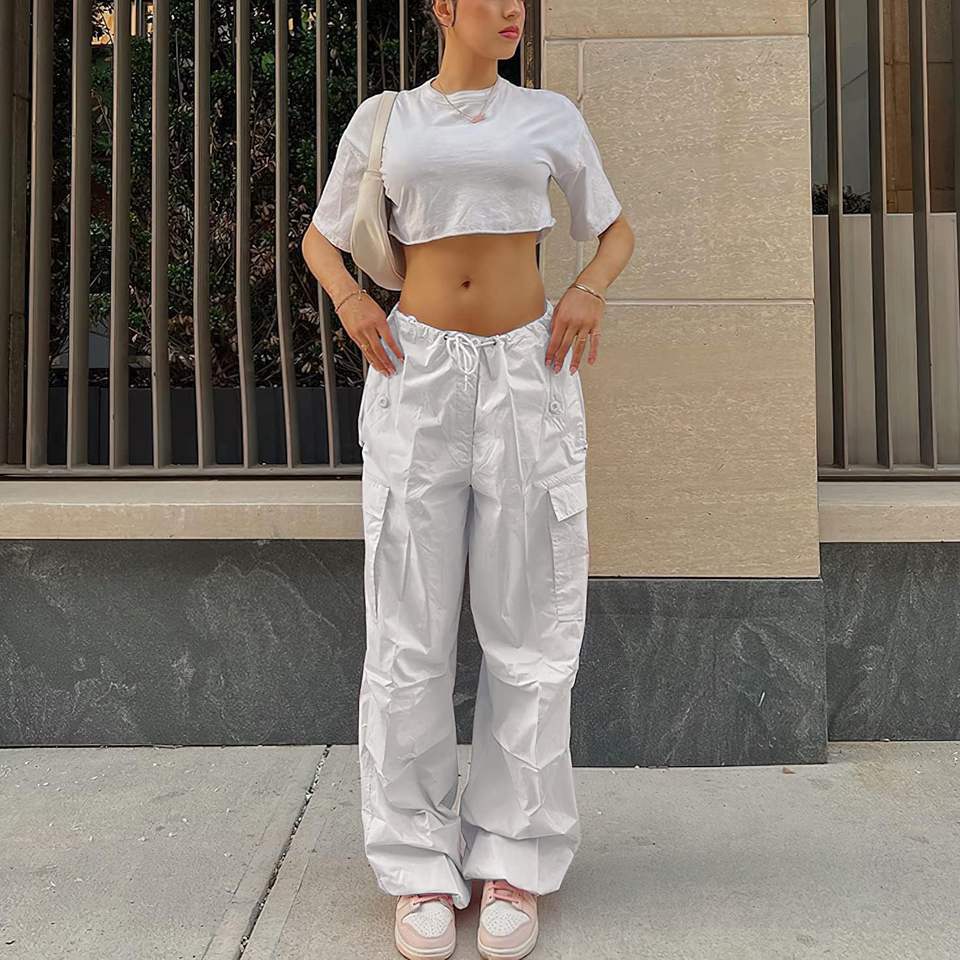 2025 Women's Oversized Cargo Pants High Rise Baggy Joggers Sweatpants Mid Waist Plus Size Y2K Wide Leg Pants Drawstring