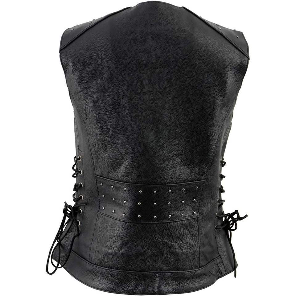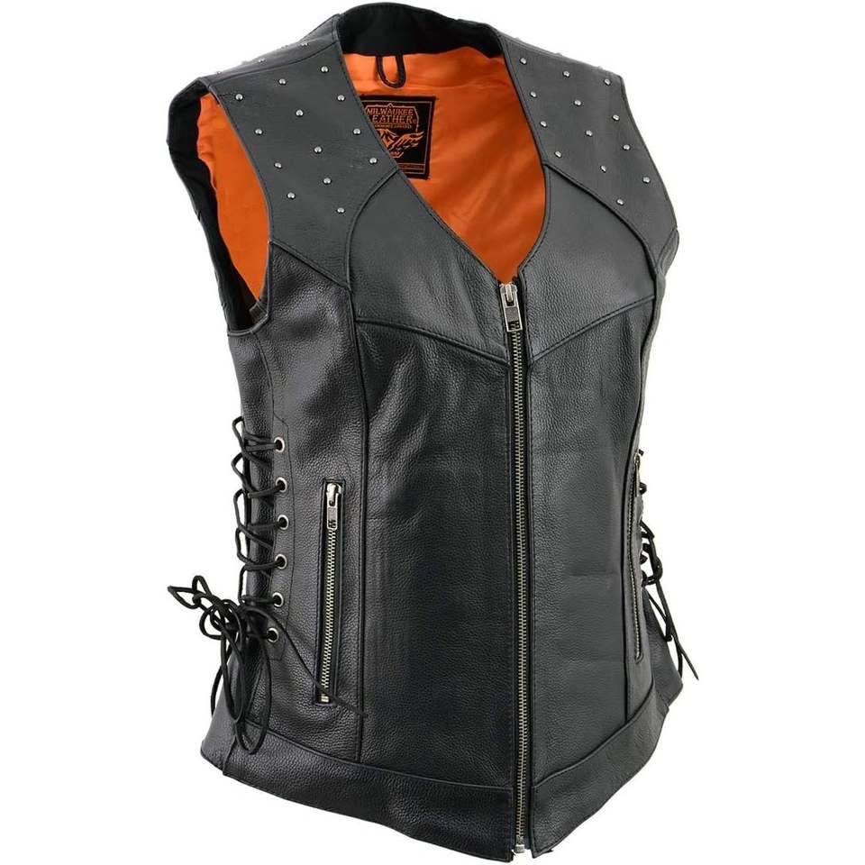 เสื้อกั๊กหนังแท้สำหรับผู้หญิง รุ่นพรีเมียมคลาสสิก ปี 2025 พร้อมเชือกผูกด้านข้างแบบปรับได้ ขนาดกลาง สำหรับขี่มอเตอร์ไซค์