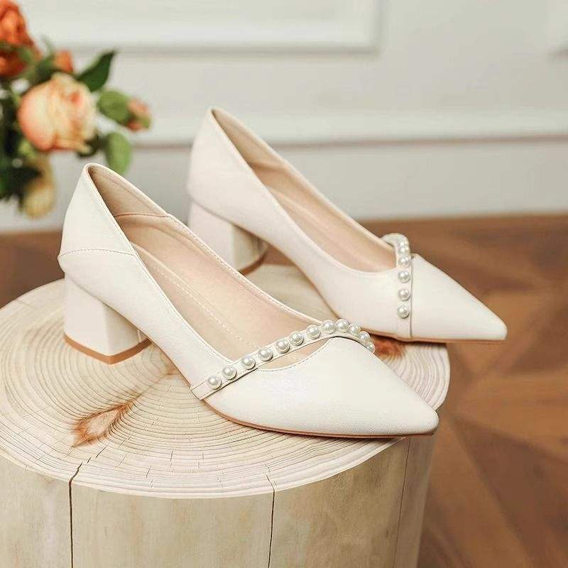 2025รองเท้าส้นสูงผู้หญิงหนังนิ่มปานกลางปากตื้นหัวแหลมนางฟ้าอ่อนโยนทุกคู่ส้นสูงลมเย็น