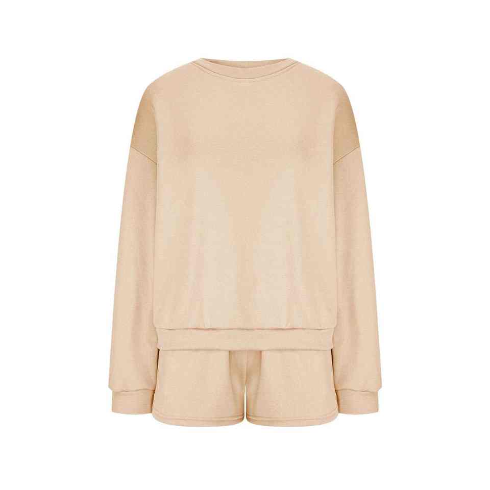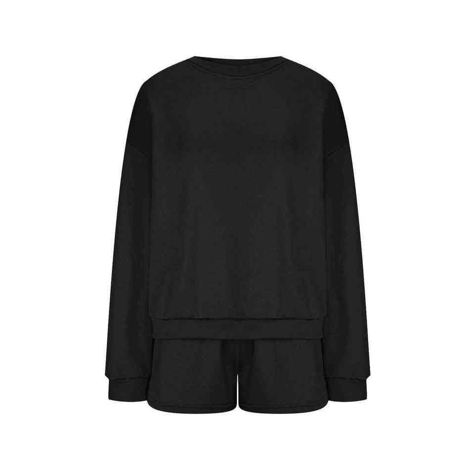 2025เซ็ตชุดลำลอง2ชิ้นสำหรับฤดูร้อนของผู้หญิงชุดเลานจ์เสื้อสเวตเชิ้ต & กางเกงขาสั้นขนาดใหญ่เสื้อผ้าลายพื้น