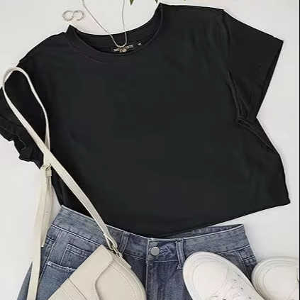 2025 Women's Summer Crop Tops Best Quality Casual Solid Short Sleeve O-Neck 100% Cotton Anti-Wrinkle Breathable Eco-Friendly