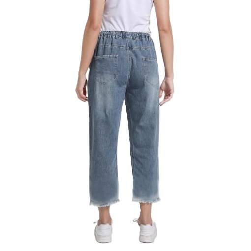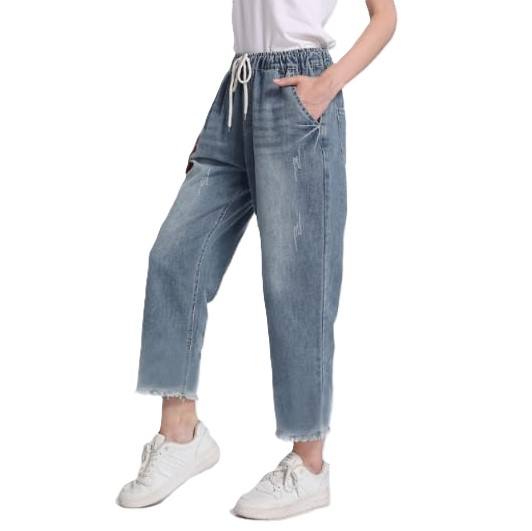 กางเกงยีนส์ทรงขาบานสำหรับผู้หญิง รุ่นซัมเมอร์ ปี 2025 ทรงหลวมปานกลาง ผ้าฝ้าย 100% ลายเรียบ สไตล์สตรีทแวร์ มีเชือกผูกเอว ใส่สบาย กันน้ำ ระบายอากาศได้ดี