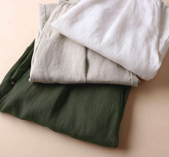 2025กางเกงขากว้างผ้าลินินและผ้าฝ้ายเอวสูง, กางเกงนักเรียนผ้าลินินเอวสูงลำลองใหม่ฤดูร้อน