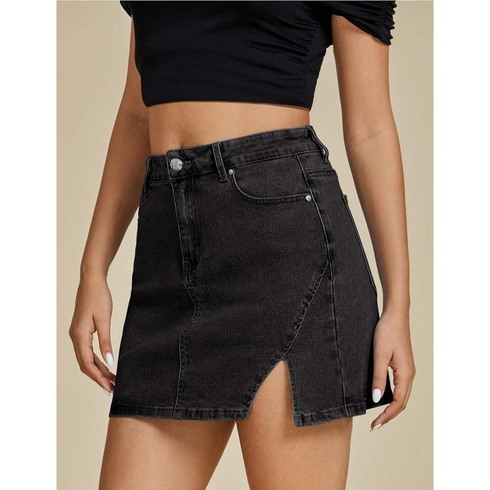 2025กระโปรงสั้นผ้ายีนส์ยาวแบบลำลองอินเทรนด์ของผู้หญิงกระโปรงยีนส์เอวสูงทรงสลิมฟิตพร้อมกระดุมผ่าข้างสำหรับตกแต่งกระโปรงยีนส์
