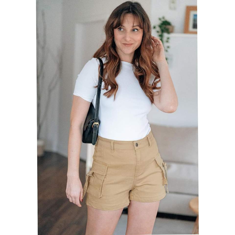 2025กางเกงคาร์โก้เอวสูงทันสมัยสำหรับผู้หญิงกางเกงขาสั้นลำลองมีคัตเอาท์สำหรับฤดูร้อนมีโลโก้กระเป๋าขนาด XS