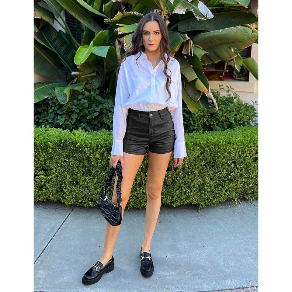 กางเกงยีนส์เอวสูงทันสมัยของผู้หญิงสำหรับ2025กางเกงยีนส์หนังเทียมมีกระเป๋าใส่สบายและมีสไตล์
