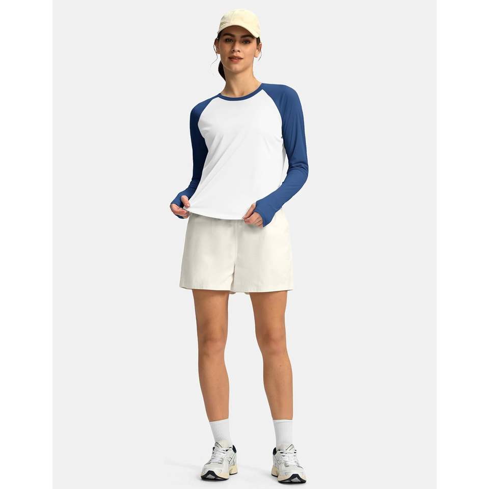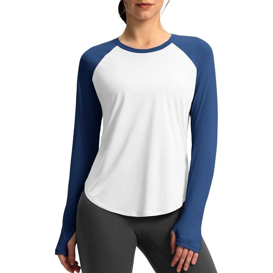 2025เสื้อออกกำลังกายแขนยาวผ้าแห้งเร็วป้องกันรังสียูวีของผู้หญิงเสื้อกันแดดสำหรับการเดินป่ากลางแจ้งสีขาวกรมท่า