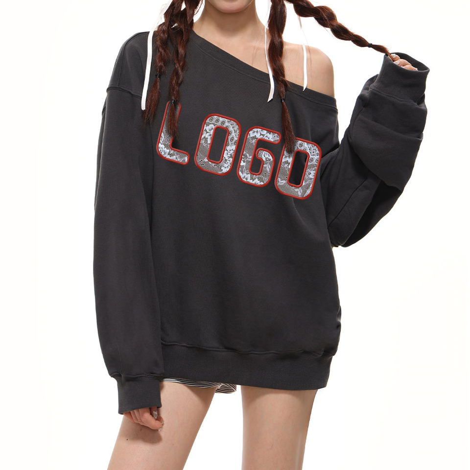 เสื้อสเวตเชิ้ตผู้หญิงกันน้ำสำหรับฤดูใบไม้ร่วงปี 2025 ผลิตจากผ้าถักเป็นมิตรกับสิ่งแวดล้อม ปักคริสตัล โลโก้สั่งทำ คอกลม ผ้าฝ้าย สีสั่งทำได้
