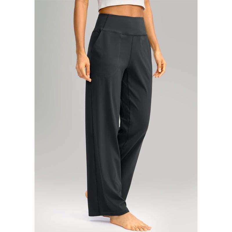 กางเกงวอร์มขากว้างเอวสูงสำหรับผู้หญิง2025กางเกงทำงานโยคะมีกระเป๋า30 "XL สีเทาเข้มสำหรับคนตัวเล็ก/ชุดเดรสยาว