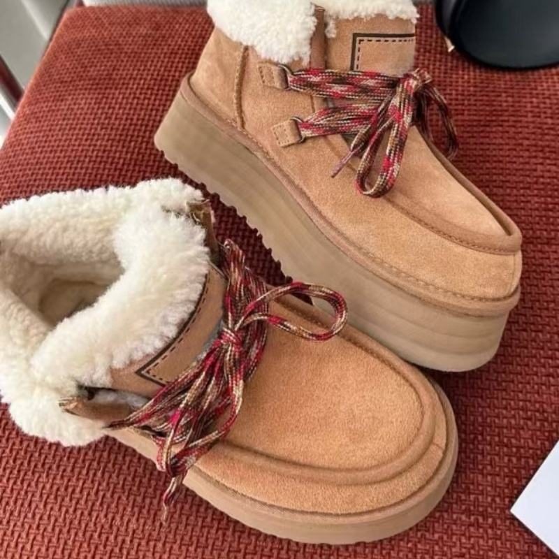 รองเท้าบูทหิมะ UGGS คุณภาพสูงสำหรับผู้หญิง ปี 2025 น้ำหนักเบา แบรนด์ดัง บุขนหนา ด้านบนแบบผูกเชือก เหมาะสำหรับเป็นของขวัญคริสต์มาส