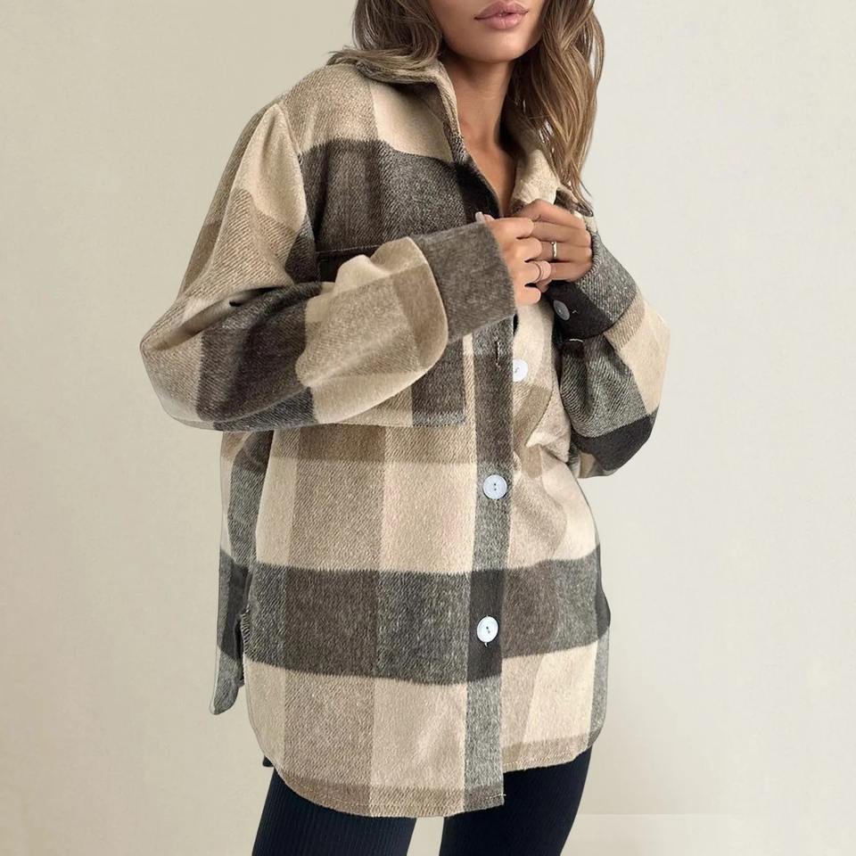 2025แจ็กเก็ตผ้าสักหลาดลายสก๊อตสำหรับผู้หญิง, แจ็กเก็ตแขนยาวมีกระดุมมีฮู้ดสำหรับฤดูหนาวโค้ทแจ็กเก็ตสไตล์มอเตอร์ไซค์