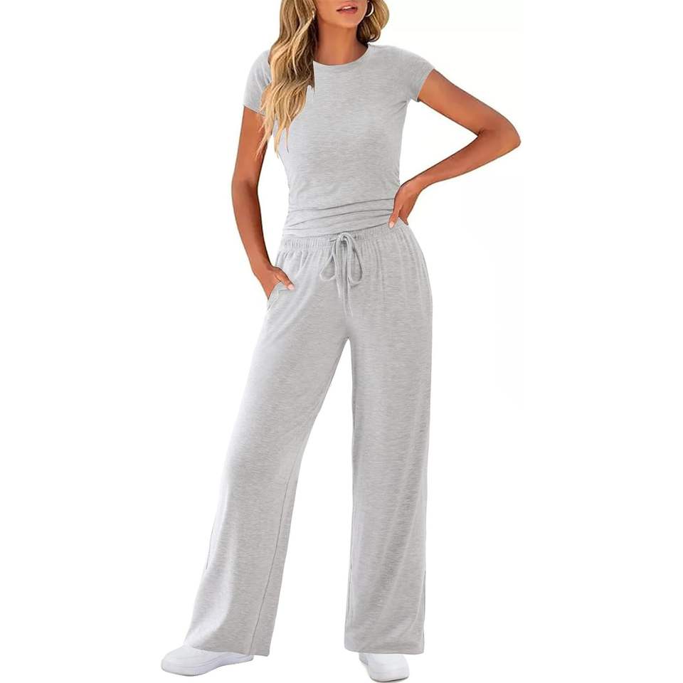 2025 xs/xs สองชิ้นสำหรับเลานจ์ชุดสองชิ้นเสื้อครอปแขนสั้นเข้าชุด Y2K ชุดวอร์มชุดนอนสำหรับผู้หญิงที่มีความยาวเหนือเข่า