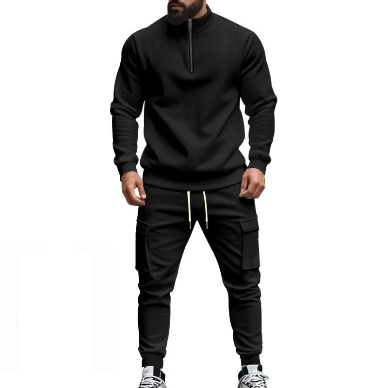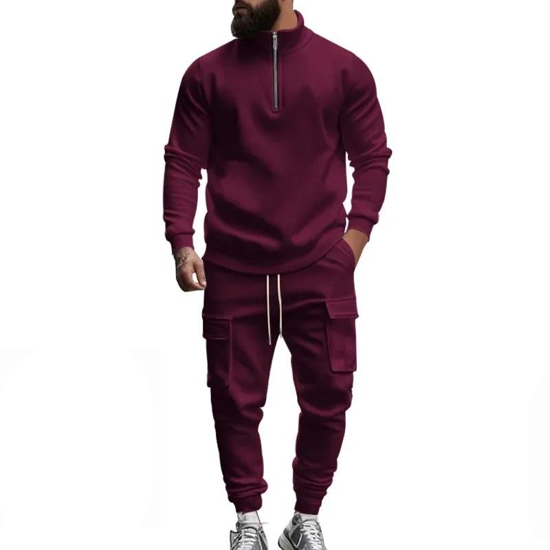 2025 autumn and winter men's casual velvet warm zipper sports trousers set