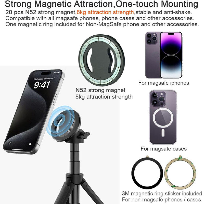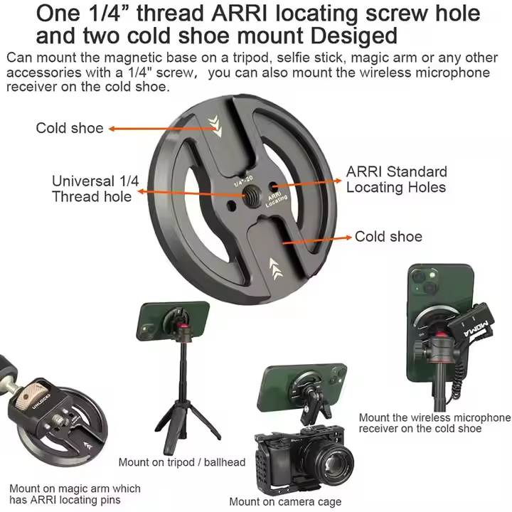 อะแดปเตอร์ขาตั้งโทรศัพท์มือถือแบบแม่เหล็กอะลูมิเนียม N52 รุ่นใหม่สำหรับ Amazon ปี 2025 พร้อมรูสกรู 14 รู รองรับ Cold Shoe และติดตั้งบนแผงหน้าปัด