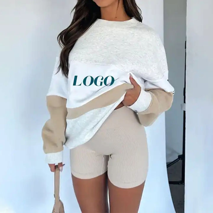 เสื้อสเวตเตอร์คอกลมของผู้หญิงเสื้อสเวตเชิ้ตคอกลมผ้าคอตตอนออร์แกนิกสำหรับใส่วิ่ง