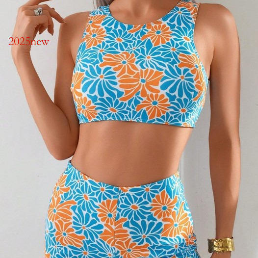 ชุดว่ายน้ำสองชิ้นเซ็กซี่เอวสูงสำหรับผู้หญิงกันยับพิมพ์ลายใหม่ขายดีใน2025