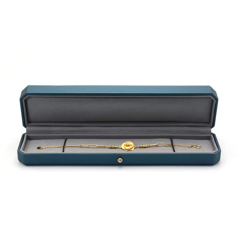 กล่องใส่เครื่องประดับสุดหรู หนัง PU ขัดเงา รูปทรงสี่เหลี่ยมผืนผ้า สกรีนโลโก้ได้ สำหรับสร้อยคอและแหวน ขายดีปี 2025