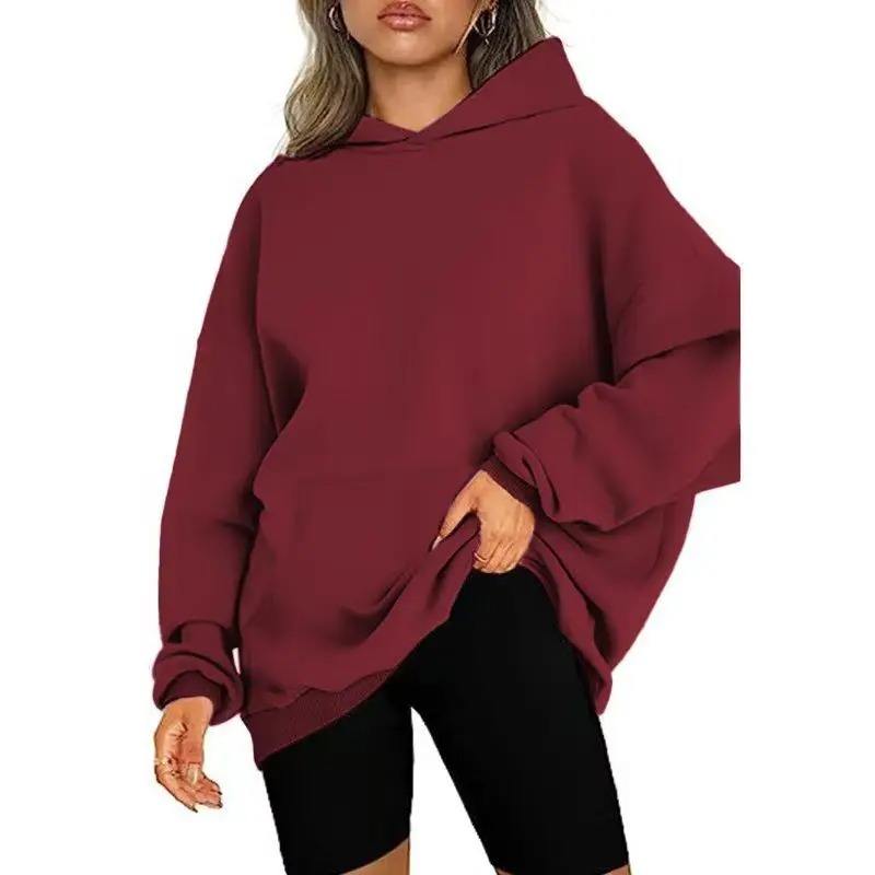 ใหม่เสื้อสเวตเชิ้ตมีฮู้ดสำหรับผู้ชายและผู้หญิงเสื้อสเวตเชิ้ตสีพื้นแขนยาวใส่แบบสวมหัวสำหรับผู้ชายและผู้หญิง2025